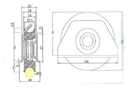 Esquema rueda 60 mm (Carga máxima 186 Kg ):
